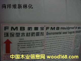 FMB防霉寶屬內(nèi)吸抗雨水流失型木材防霉劑.能在水中迅速容解形成淡白色乳液.其高分子活性成分能迅速擴(kuò)散滲透至木材纖維組織中.不僅能防止木材內(nèi)部產(chǎn)生藍(lán)變.還能觸殺木材表面霉菌,本品對(duì)多種曲霉、木霉和青霉有很強(qiáng)的殺滅作用,對(duì)防止藍(lán)變菌生長(zhǎng)有明顯效果,是竹、木材的理想防霉劑,尤其適用于橡膠木,樟子松,落葉松,樺木,楓木等易霉變樹種預(yù)防處理